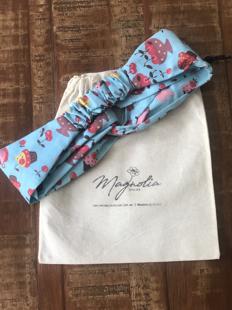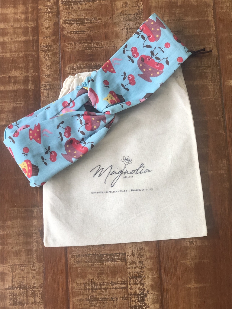 Faixa ajustável para cabeça, com elástico na nuca. Confeccionada em tecido tricoline 100% algodão. Maior durabilidade, absorção e toque macios. Acompanha saquinho em tecido como embalagem. Lavar à temperatura máxima de 40°, não usar alvejante à base de cloro. Pode secar à máquina, porém em temperatura mínima. Utilizar ferro quente, temperatura máxima de 200°.